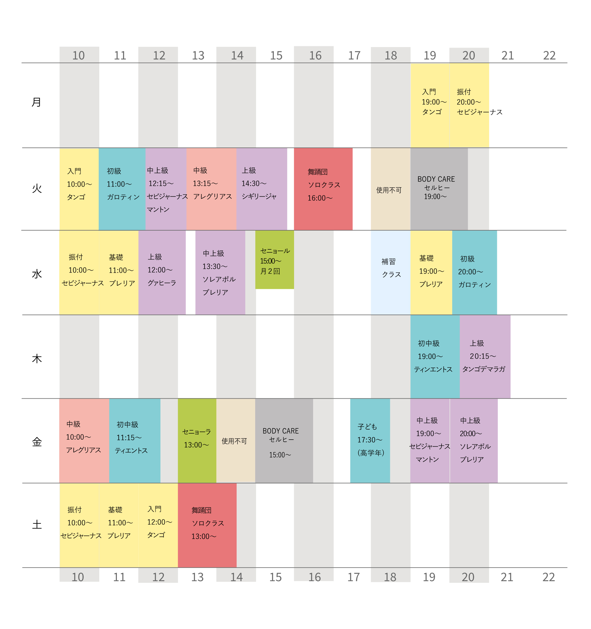 詳しい時間割は、レッスンスケジュールにてご確認ください。